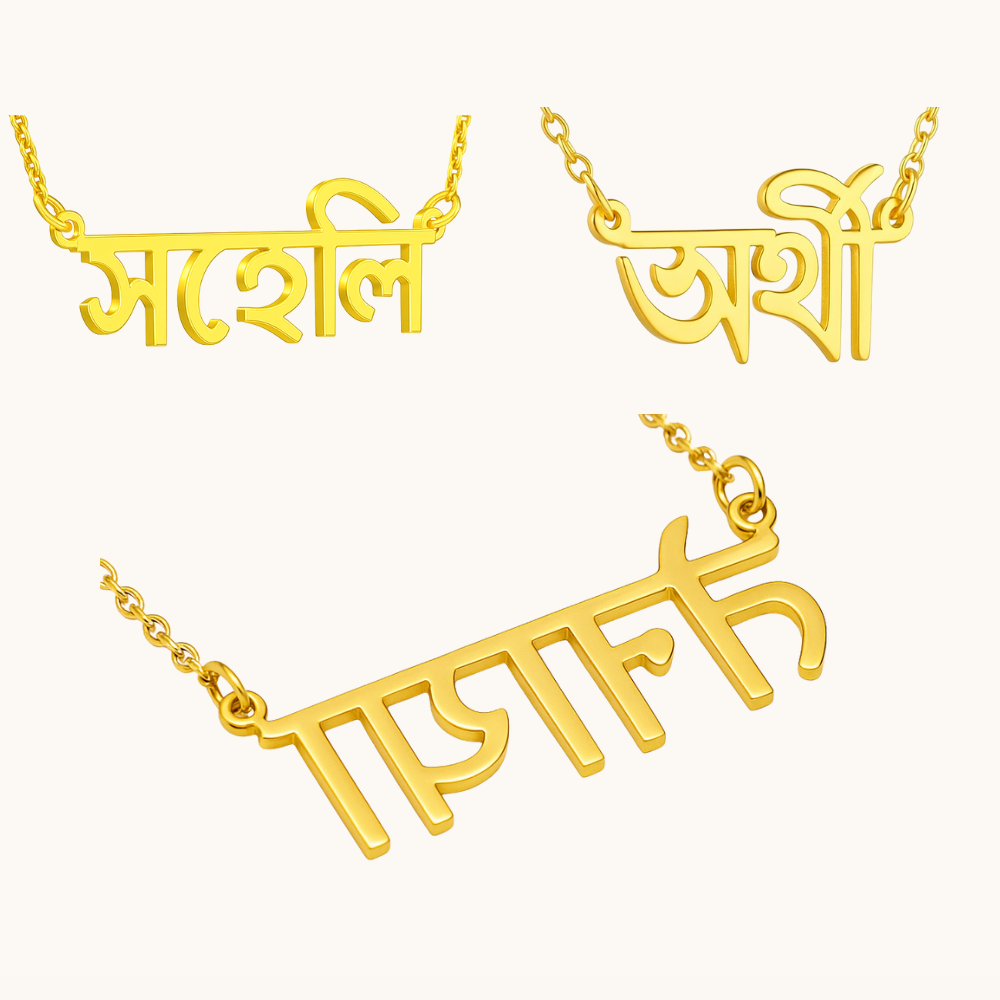 Begin your journey by sending us a message with the details of the Bengali name pendant you’d love to create.
